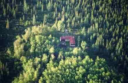 Wir erreichten die Huette auf der ueblichen Route. In Chicago stiegen wir in eine North-West Maschine und gelangten an den Verteiler Flughafen. Dort nahmen wir den Zubringer, ein Propeller-Flugzeug, zur Grenzstadt International Falls. Eure Limousine holte uns dort ab und wir passierten die Grenze. An eurer Tuerschwelle stiegen wir aus.